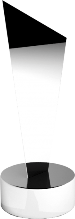 Essa peça é um modelo clássico de troféu, contendo apenas uma única haste fixada dentro de sua base (não aparente) e gravação em impressão digital (um processo que permite que a gravação possua diversas cores) e com base elíptica.